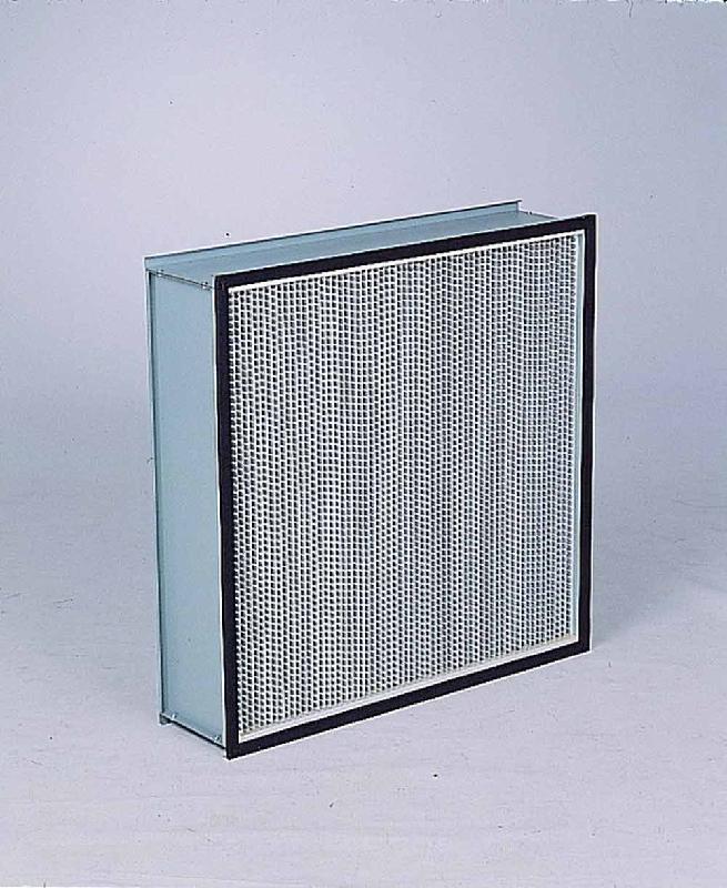 簡介——有隔板高效過濾器設計特點:1主要用于過濾0.3um以上的空氣懸浮顆粒,作為各種過濾系統的末端過濾。2濾料采用超細玻璃纖維濾紙制成,以膠板紙、鋁箔板等材料折疊為分隔。3波紋形紙隔板或鋁隔板維持每一褶紙之等距間隔,氣流易于穿過,確保濾材有效利用及增加強度。4過濾器濾材兩面180度翻折,形成鍥形褶層,鍥形盒式褶層可防